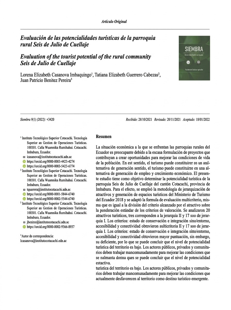 1.-Evaluation of the Tourism Potential of the Rural Parish Seis de Julio de Cuellaje