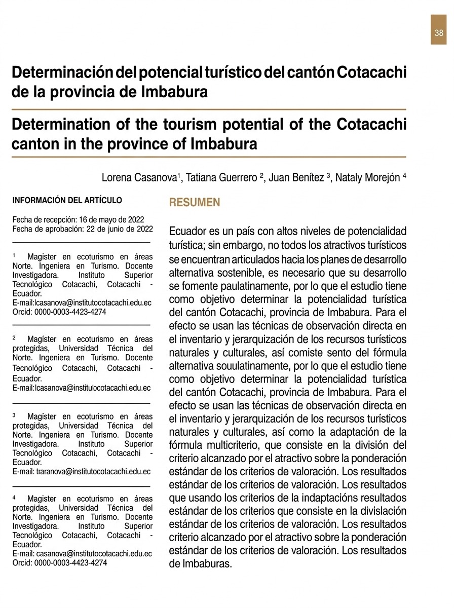 6.- Determination of the Tourism Potential of the Canton of Cotacachi, Province of Imbabura